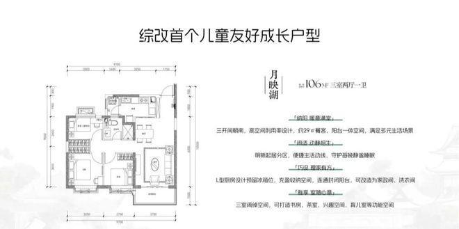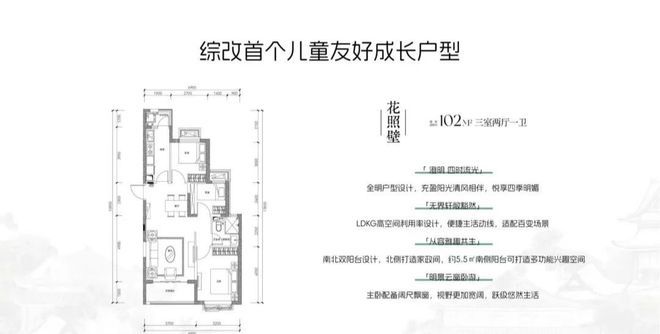 花语雅颂102平三居。小三居户型设计,南北通透,动静分离,两个卧室朝北,客厅主卧朝南,有封闭阳台。客厅开间3.7米。北侧无连廊。